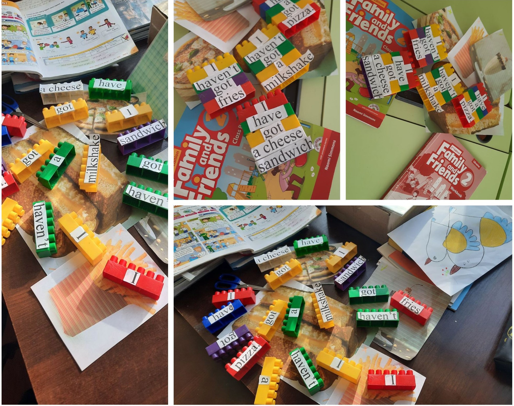 - закріплюють елементарні мовні конструкції англійської мови під час опису власних виробів (наприклад: cut, fold, glue, paint, build, make, color ...);